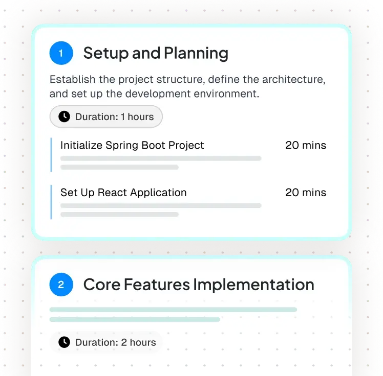 Get project ideas that match your role, your stack, and your goals - complete with specs, milestones, and metrics.